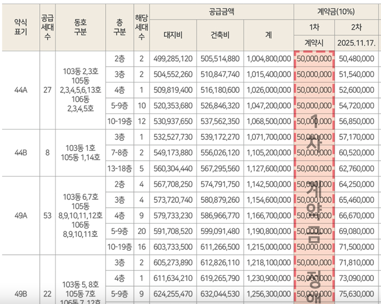 철산역자이는 초기 계약금이 1천만원이었는데 여기는 5천만원이다.